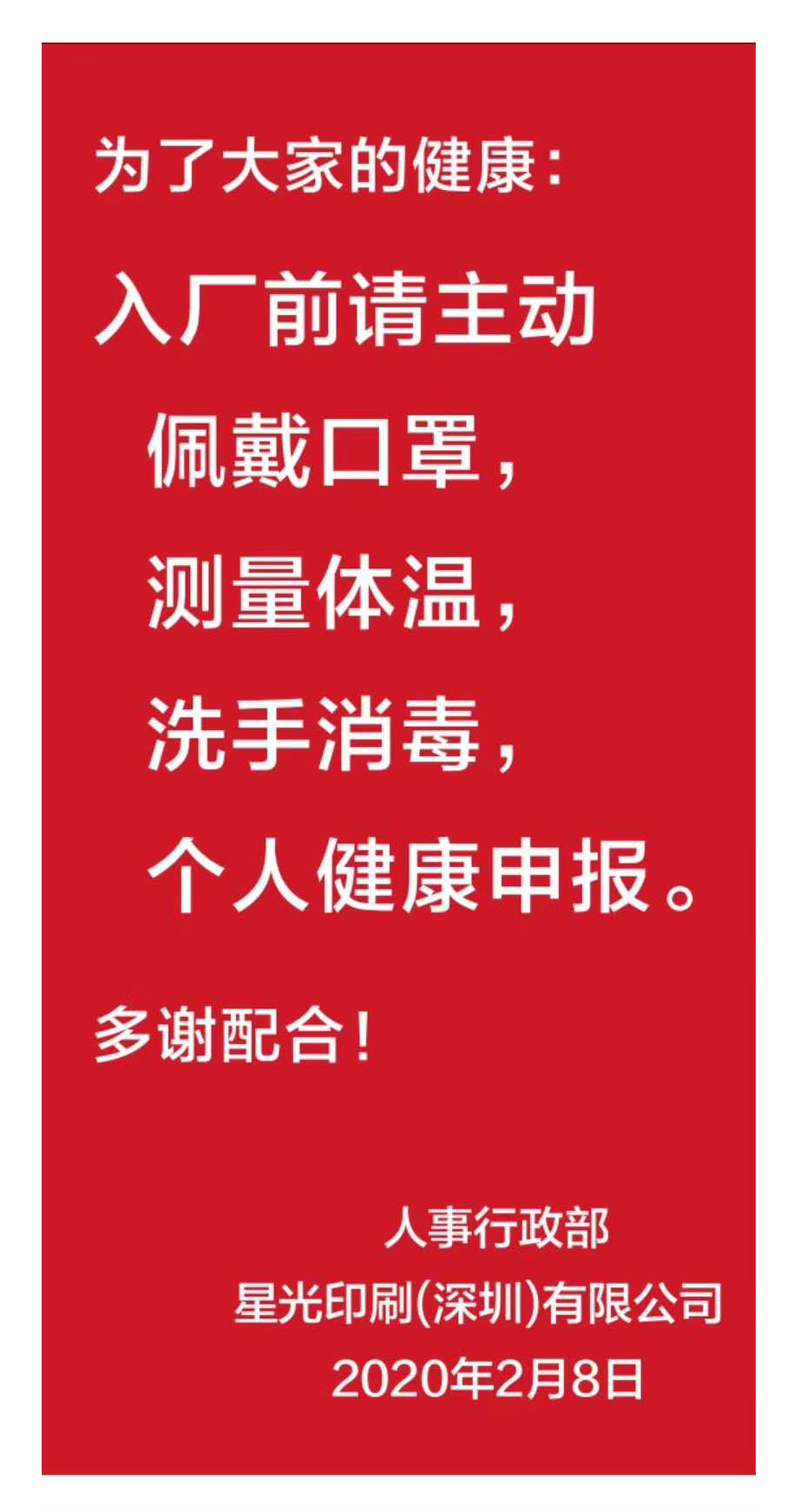星光深圳于2月13日迎来年后复工首日。由于此前已严格按照防控要求做好部署,并落实了各项细致严谨的防疫措施,复工当日,生产、办公现场秩序井然。