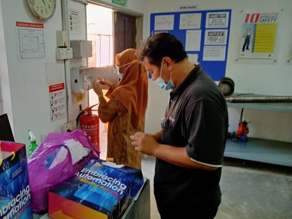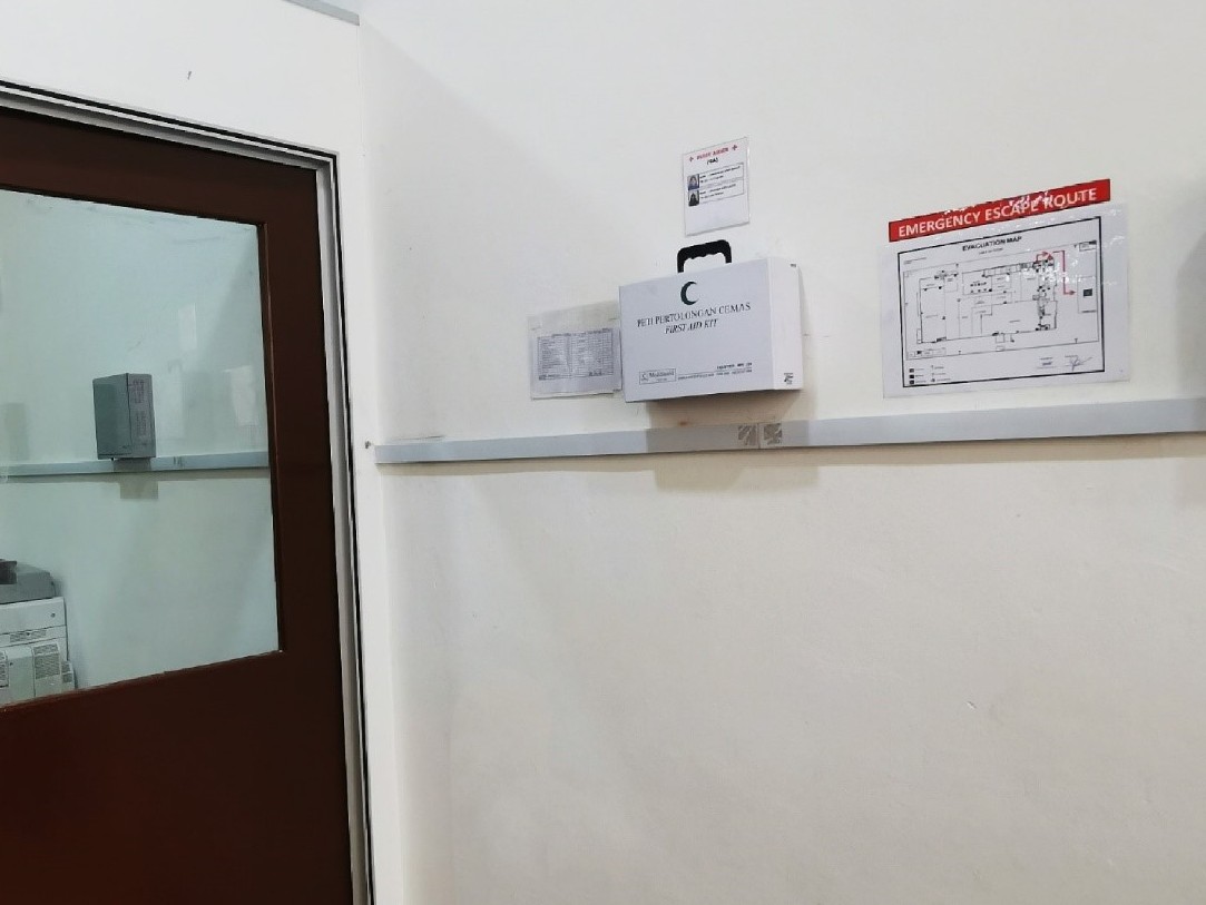 安全委员会进行定期检查急救箱和灭火器。这是为了确保存放急救箱中的物品充足还有确保灭火器仍在设定的位置,同时也检查压力表,确保指示器在操作范围内。