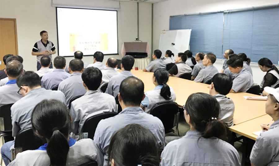 2018年12月,總經理鐘治塘先生走上講台,開啟安全月安全意識、安全法制、安全責任培訓的第一節課;並帶領安全稽查小組深入車間,進行安全隱患大排查,即查即改,立項追踪。各單元主管對安全系列工作強勢推行,細化EHS要求,共建安全工作環境,為公司的持續發展,為員工的幸福,實現0事故的目標努力。